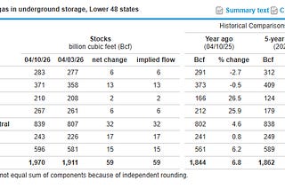 Storage grows by 50 Bcf to mark the start of the traditional injection season.