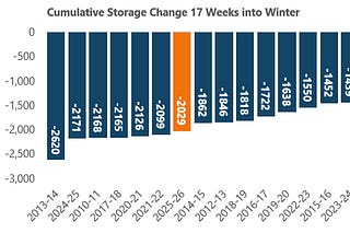 Withdrawal comes in lighter than historical benchmarks due to reduced heating needs.