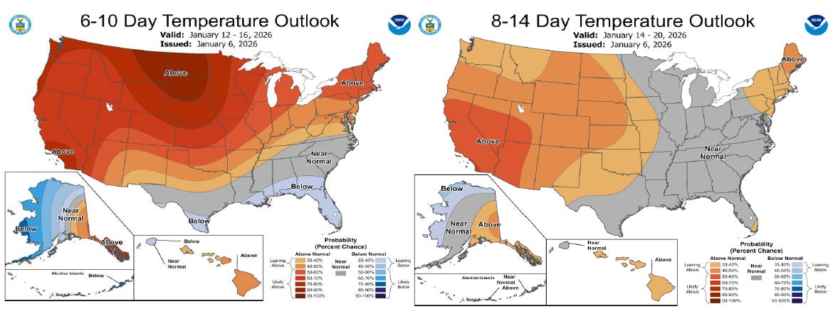 Bearish weather continues to weigh on futures pricing. Although warm anomalies are expected to normalize by the end of the two-week period, the eastern half of the U.S. is expected to register historic warmth over the next five days. This will weigh heavily on residential and commercial natural gas demand, as well as power generation burn, severely limiting storage withdrawals in the coming weeks.