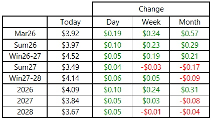 If cold weather ends up sticking around deep into the month and shows signs of intensifying, there is still plenty of upside risk for the Summer 2026 strip as the market tries to weigh the lasting impact of a potential storage deficit coming out of the winter.