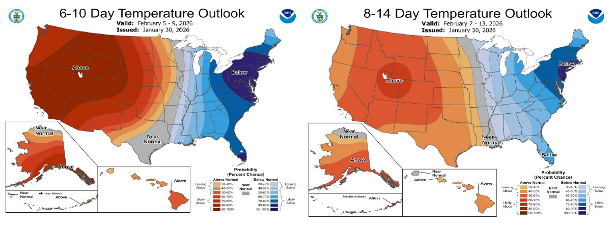 With more intense cold expected this weekend and below-normal anomalies likely to linger into at least mid-February, volatility is expected to remain elevated until further notice.
