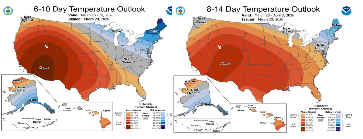 Following the brief cold snap early this week, temperature patterns are entering an overtly bearish stretch into early next week. Although some cooler-than-normal weather is expected to impact parts of the Midwest and East over the next 10 days, the intensity at this point in the season will likely be muted. Weather-related demand is clearly on the downswing, and storage inventories should resume growth after a likely net withdrawal in next week’s report.