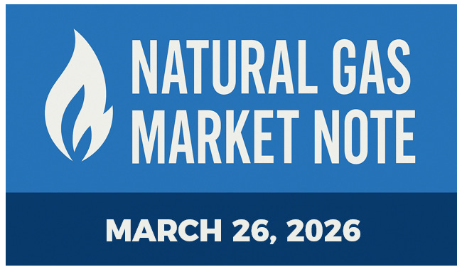 Natural gas futures pushed higher on Thursday amid relatively quiet trading activity surrounding the EIA storage report. The prompt-month April 2026 contract ended just below $3.00 per MMBtu, up about 5 cents on the day. Gains were more modest further out the curve, with the Summer 2026 strip up just $0.01 and Winter 2026–27 increasing by $0.02 per MMBtu.