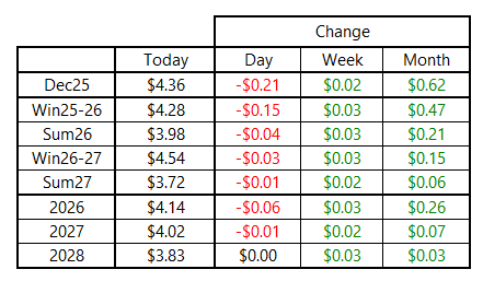 December’s premium over February is back to about $0.07 per MMBtu after widening to about $0.15 last week. Under most normal forward market conditions, December should trade at a discount to February, which is an inherently riskier month for the natural gas market.