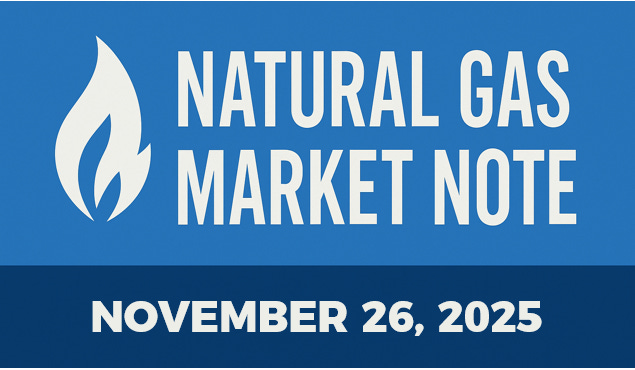 Despite today’s rally, contracts through March 2026 ended the day still down about $0.20 per MMBtu from week-ago levels. The lack of additional upside even as cold weather forecasts intensify suggests that the market has already priced in a cold start to December. Unless near-term outlooks soften substantially, the price direction going forward likely hinges on how forecasts develop beyond the two-week period. If the second half of December looks to have a cooler-than-normal bias, there is still further upside risk in the market. On the other hand, if near-term cold disappoints or models begin to show a pattern flip back to mild near the middle of the month, some of the premium could be let out of the curve.